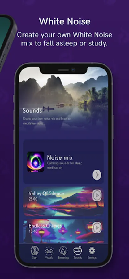 Tailor your meditation experience with ZenEase's innovative noise generation feature. Create your own unique ASMR sounds by blending a variety of soothing white noise sounds such as "highway," "birdsong," "rain," and many more. Customize the blend to suit your mood and preference, allowing the ambient sounds to transport you to a peaceful and rejuvenating environment. Let the sounds of nature and the world around you envelop you, enhancing your meditation practice and creating a truly immersive experience.