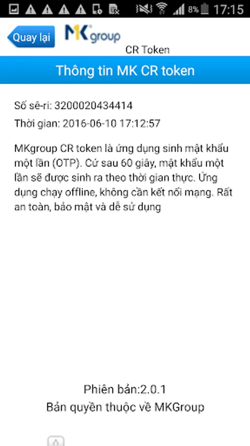 Keypass CR token is a challenge response one-time password (OTP) generation software. It is time-based and each 60 seconds will be generated a new respond. In the OTP generation process, no communication and no data transfer. It is secured and easy to use!