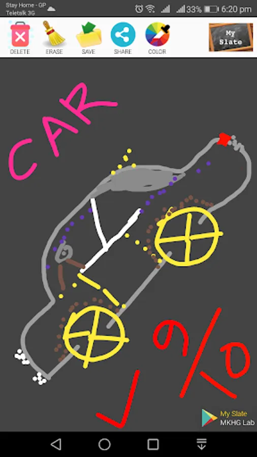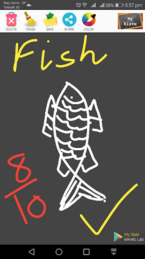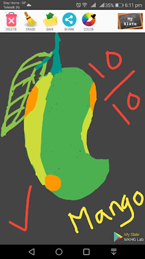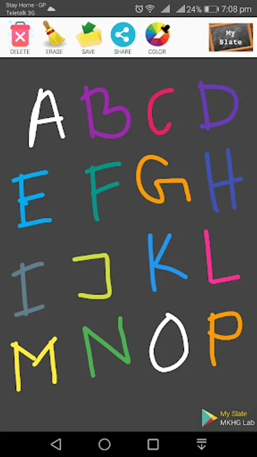 Your phone can now be easily converted to an on-the-move Slate. Yes, a Slate for kids. All children start writing by scribbling, an activity most toddlers enjoy. As soon as your child is old enough to scribble (as early as a 2 year old) you must offer them this "My Slate" and let him or her enjoy, experiment and learn. My slate helps to encourage kids to translate their imagination on to the slate.