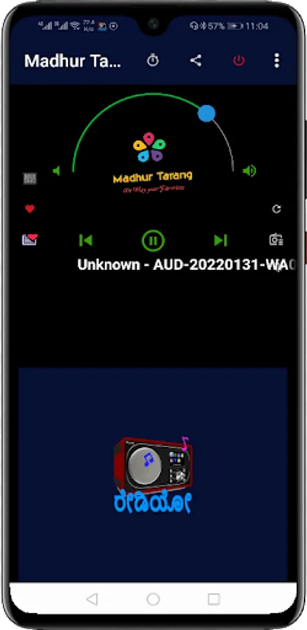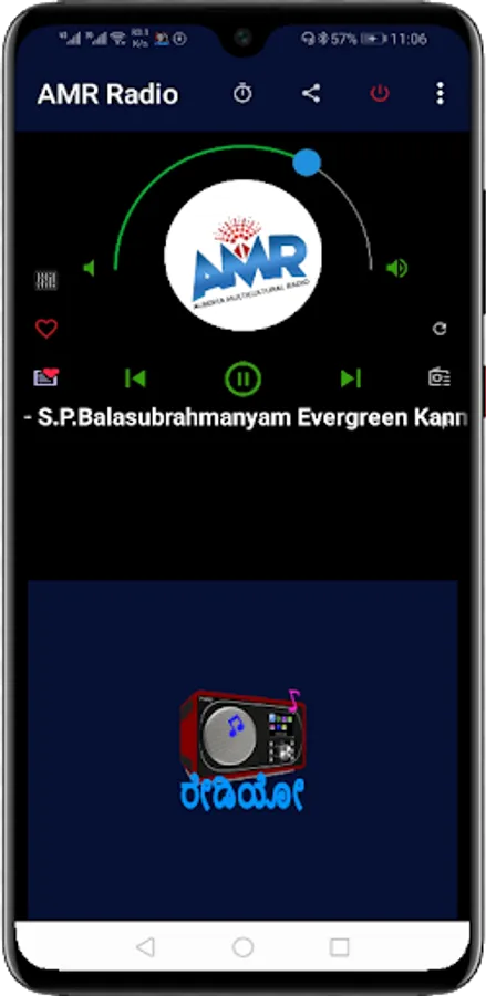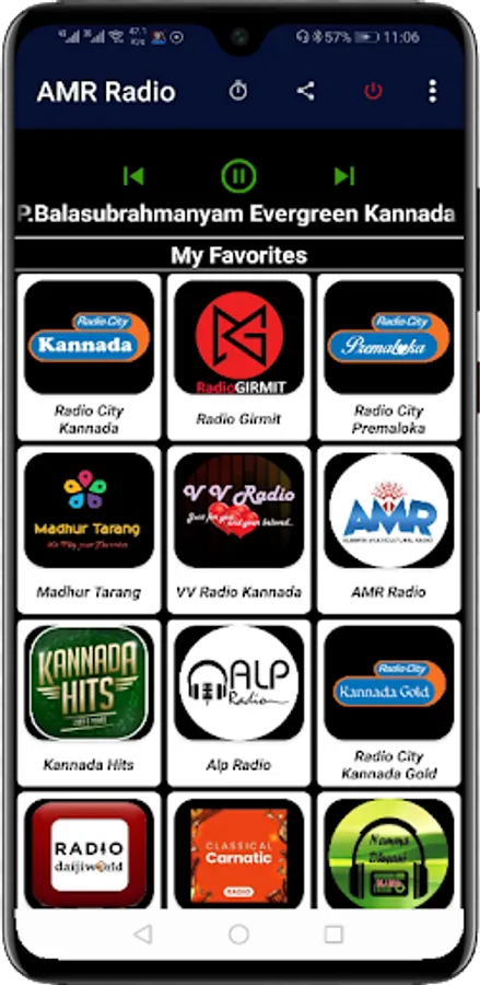 βΆ play and pause button,Next/Previous button for next/Previous stations and