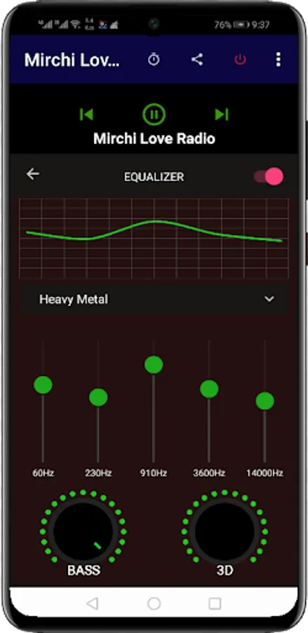 ▶ play and pause button,Next/Previous button for next/Previous stations