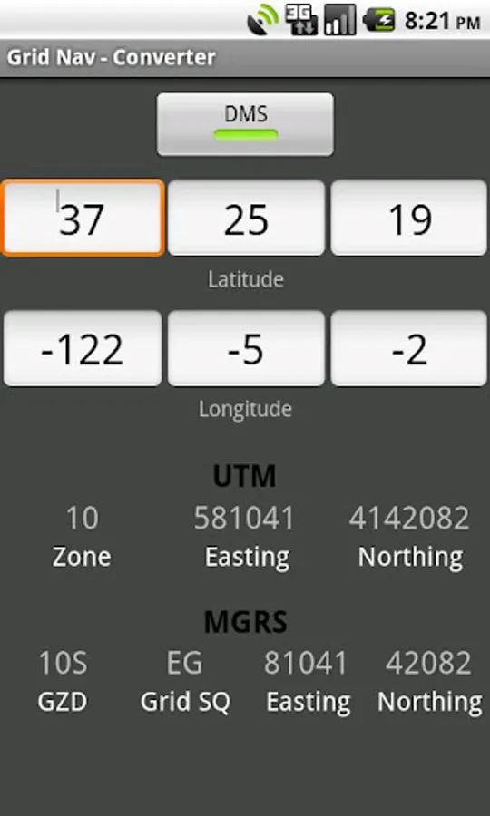 -Converter converts coordinates between degrees and DMS and UTM and MGRS