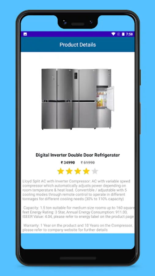 App has created a user-friendly mobile application that allows users to effortlessly explore a diverse selection of products. The app provides a comprehensive list of products, accompanied by their specifications, enabling users to easily view and choose their own preferred items. This app offers a wide range of electronic devices such as televisions, fridges, smartphones, and solar panels.