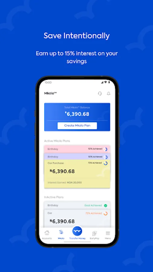 - Mkolo - Earn up to 15% interest per annum with our automated goal-based savings feature and watch your money grow!