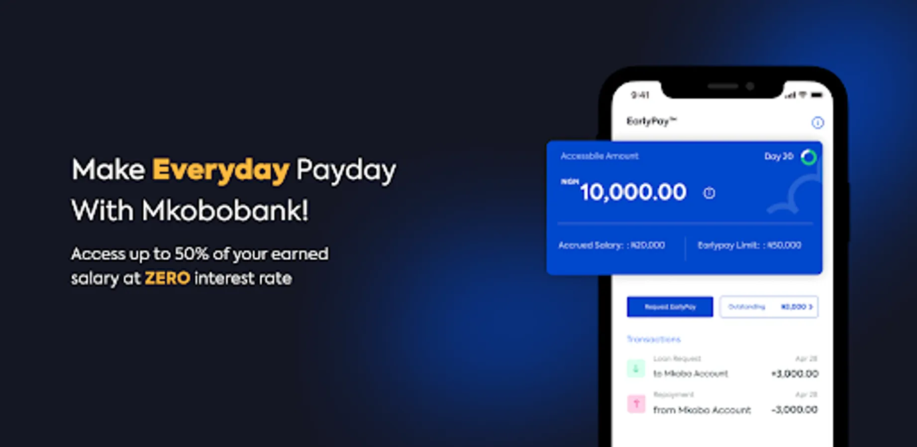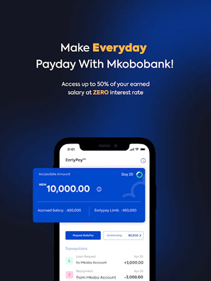 Mkobobank - The digital bank for salary earners, self-employed, and entrepreneurs that gives you access to up to 50% of your earned salary before Payday at ZERO interest anytime!