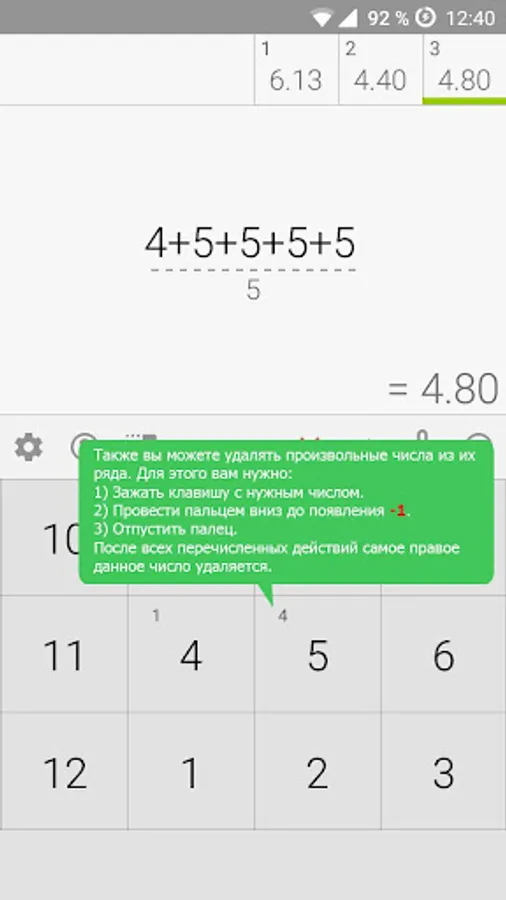 This feature provides the following: let's say you have a number of evaluations 3 2 2 2 2 so it is possible to remove the 3 simply swiping on the appropriate button with your finger down.