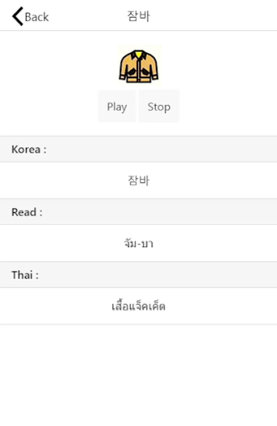 The Korean vocabulary contained in this app has been separated into only the type of clothing. Words accompanied by word illustrations, letters for pronunciation. And pronunciation recorded by native speakers. It will allow you to learn Korean properly. Like native speakers