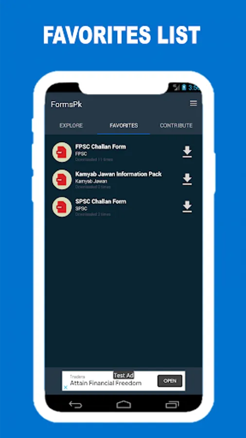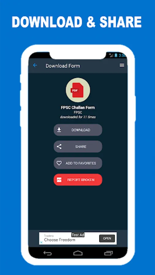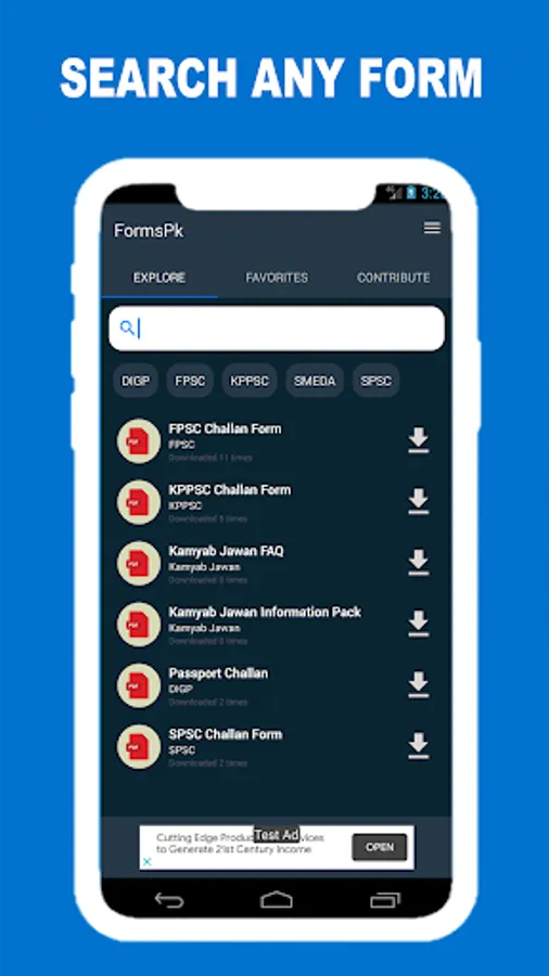 The application enables you to download any available form related to Government Institutions, Educational Forms, Bank Challans, Government Schemes and much more which are contributed by other users on the app.