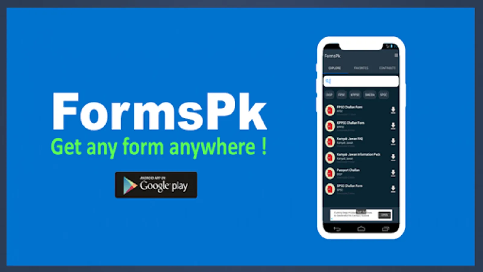 FormsPk app is developed by MK-Production which is an independent entity. We are not affiliated, associated, authorized, endorsed by, or in any way officially connected with any other company, agency or Government agency/Institution.