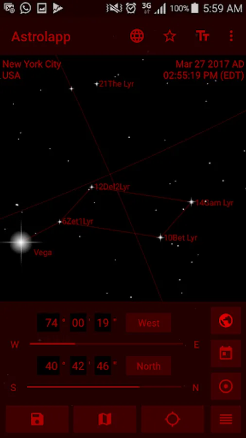 Astrolapp automatically detects your current location and uses it to calculate the starry sky as you are seeing it. But if you ever want to know what the starry sky looks like at the other end of the world, just use the built-in map to select any other location.
