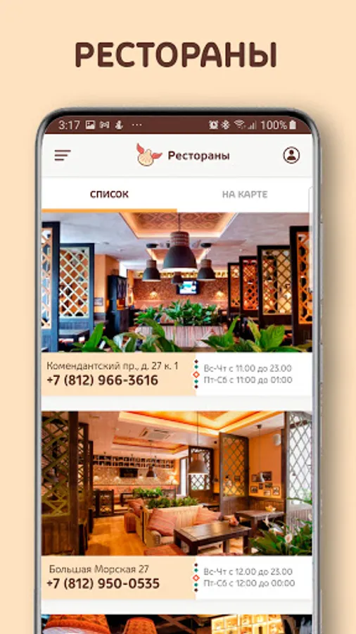 Application of the family of restaurants of Georgian cuisine "Pkhali Khinkali". You can see the list of restaurants, find restaurants on the map, familiarize yourself with the restaurant menu and the interior.