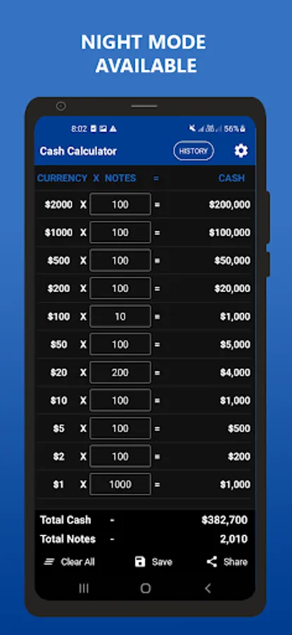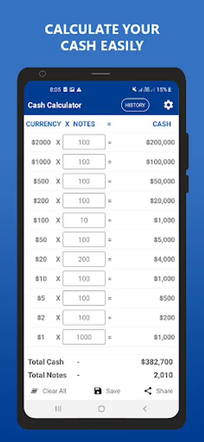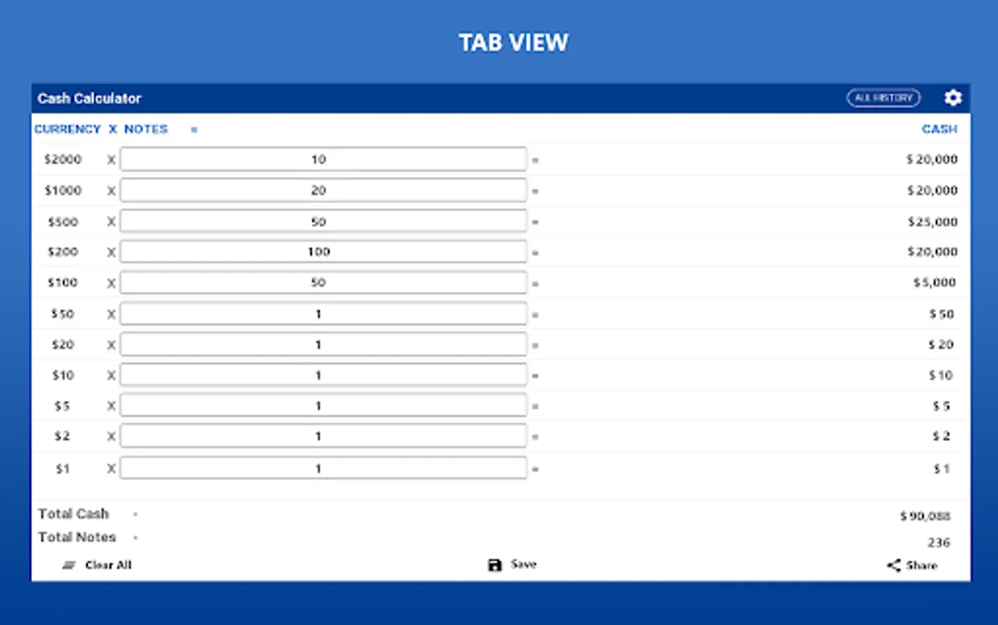 Cash calculator app is a simple and handy cash calculator using which you can easily calculate your cash and share it with your friends and family.