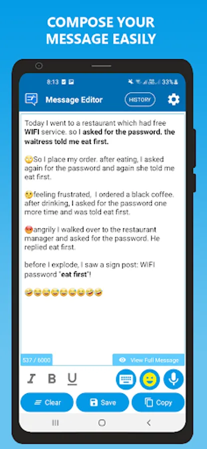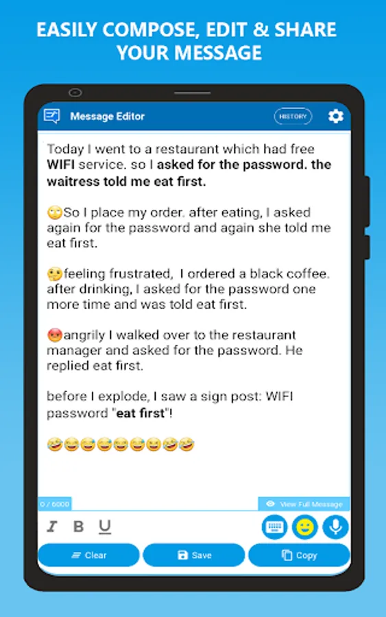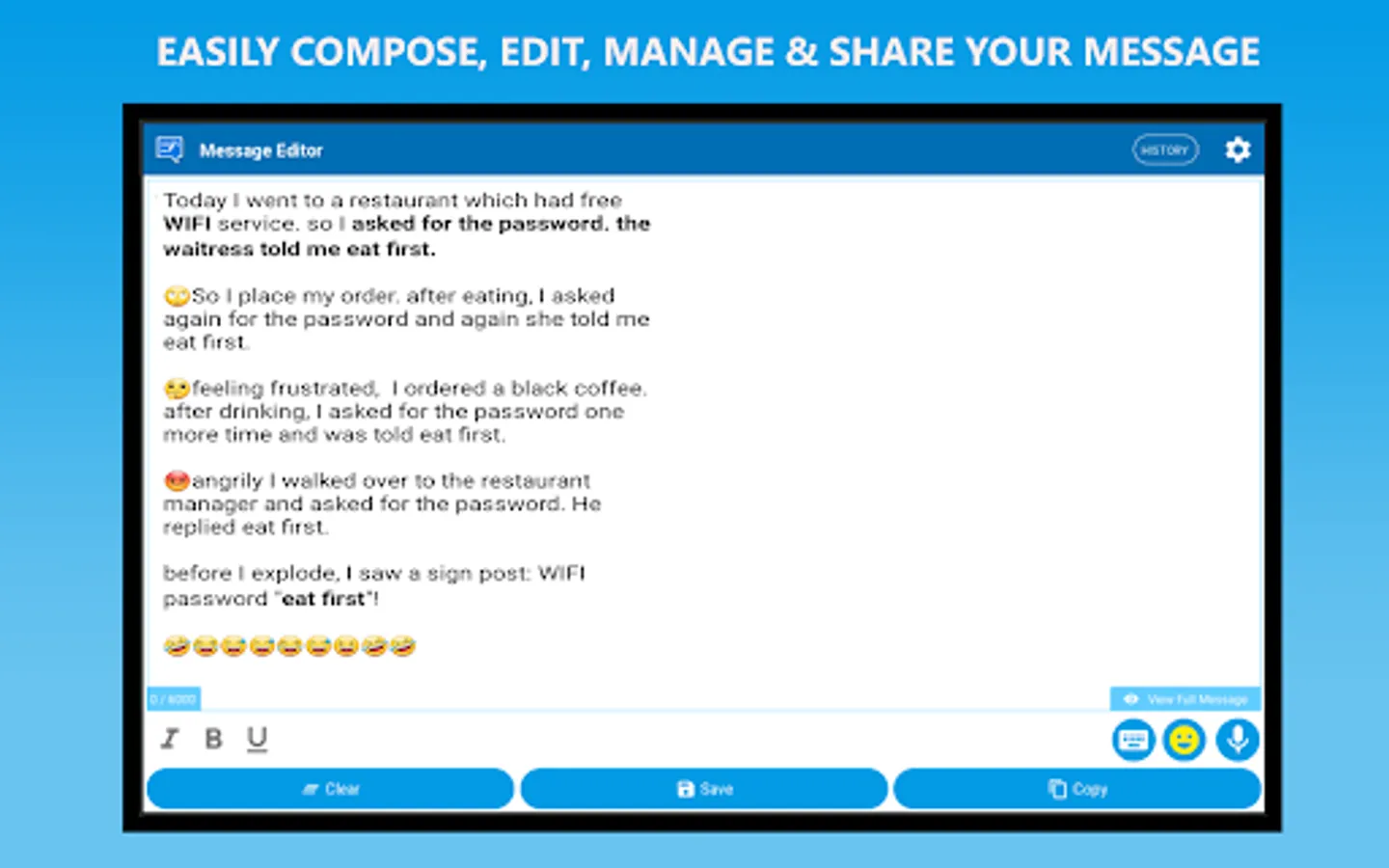 6.Easy Sharing: Copy and share your custom text messages with friends and family.