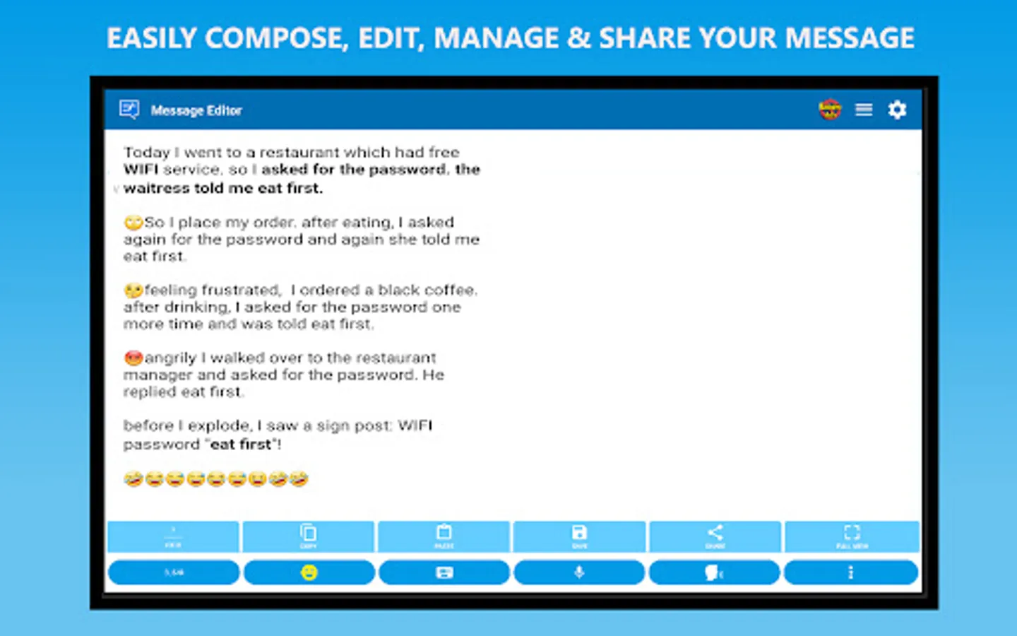 If you're searching for a reliable message text editor app, Message Editor App is your perfect choice. This app offers a simple, intuitive user interface to help you compose, edit, and share messages effortlessly.
