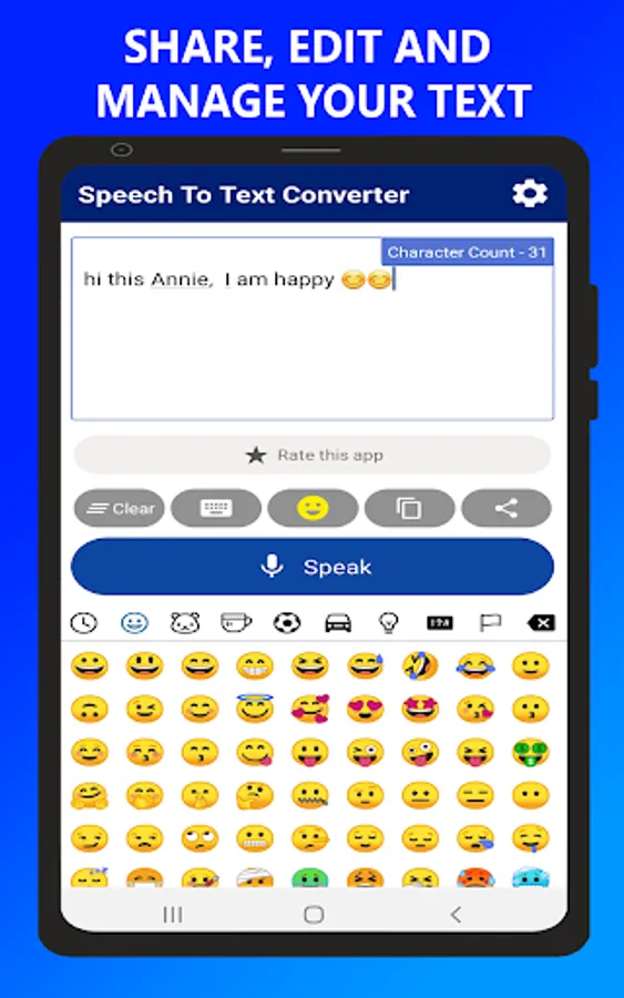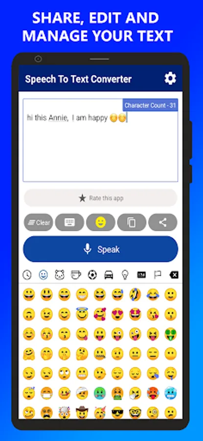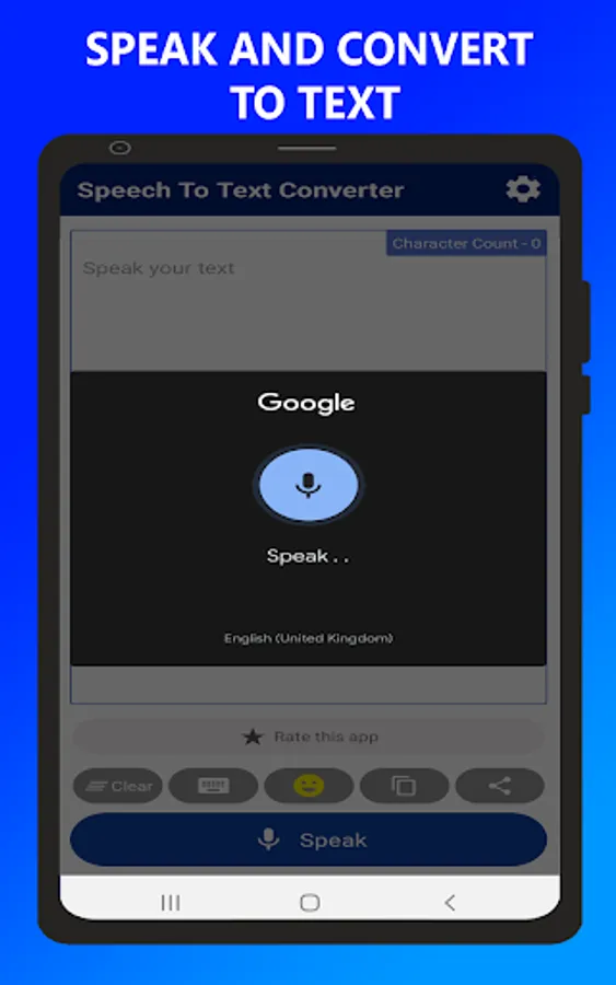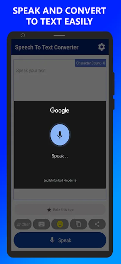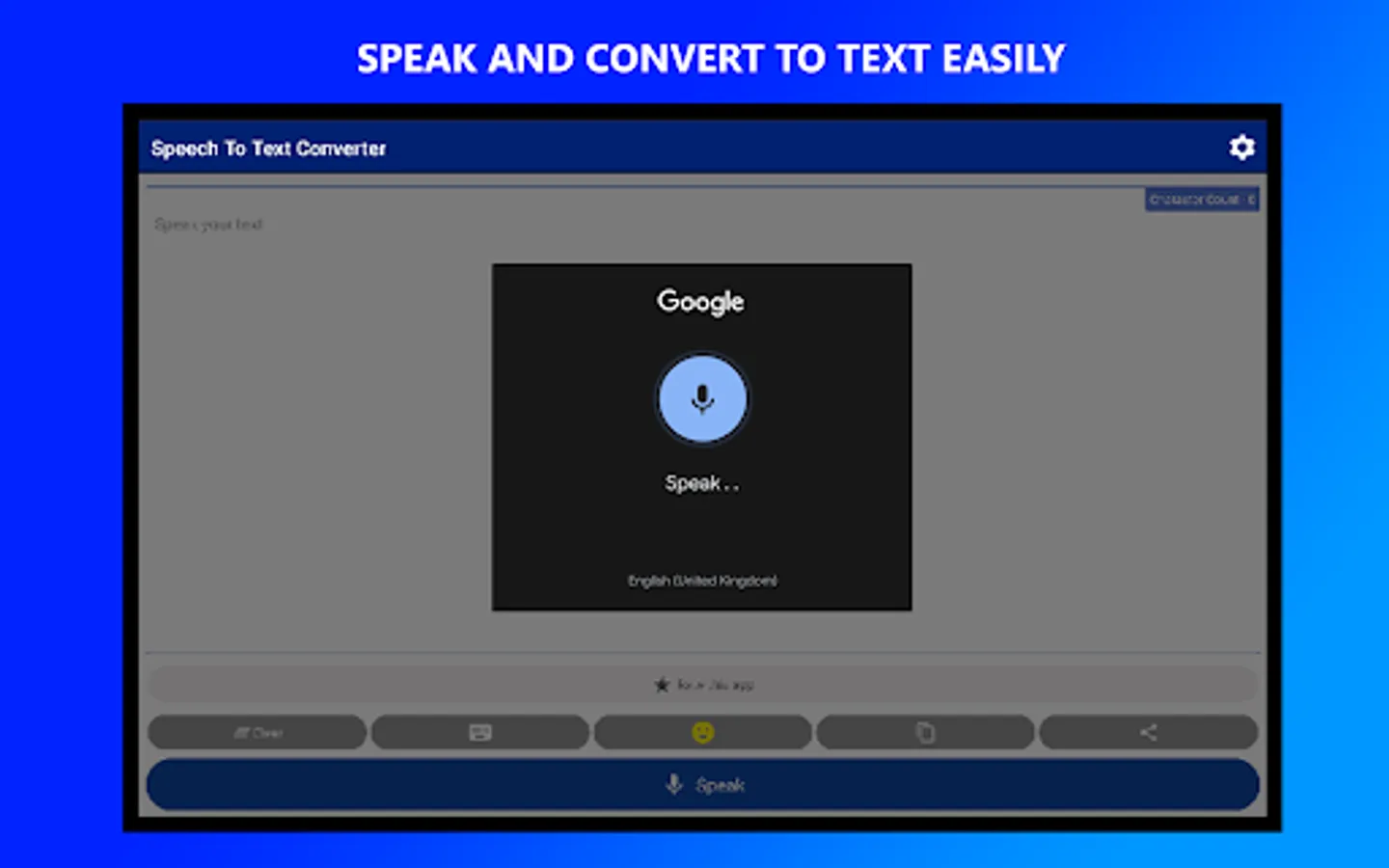 This Speech to text converter app is a simple and easy to use app using which you can easily convert and edit your voice speech to text and share it easily with your friends on WhatsApp or Instagram.