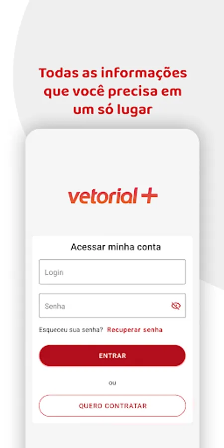 Application to access the customer support service of Vetorial. It is a tool in which you can issue 2nd copy of slips, analyze daily or monthly consumption of your connections, pay monthly fees online, view protocols and a web security booklet in accordance with Anatel regulations, among other features.