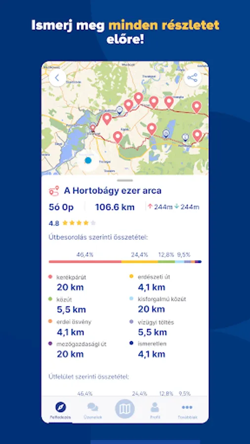 Plan your road trip or a pleasant bike tour! Choose which landscapes you want to cycle on: the landscapes of Hortobágy, Lake Tisza and Debrecen, on asphalt or on quiet bikeable roads! Pay attention to the smallest details, such as the road surface, degree of difficulty, distance and altitude levels.