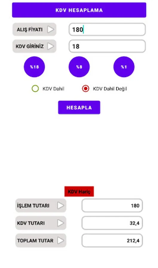 KDV Hesaplayıcı Pratik Screenshots