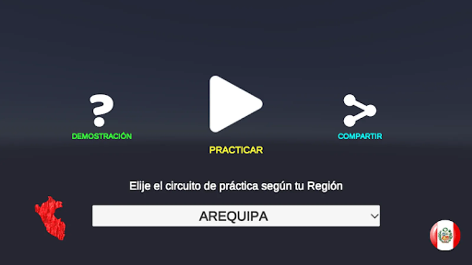 This application was created with educational purposes to help you in the preparation of the practical exam in obtaining the driver's license of the MTC of Peru. This application is not affiliated with the Ministry of Transport and Communications (MTC of Peru) or with another institution of the government of Peru.