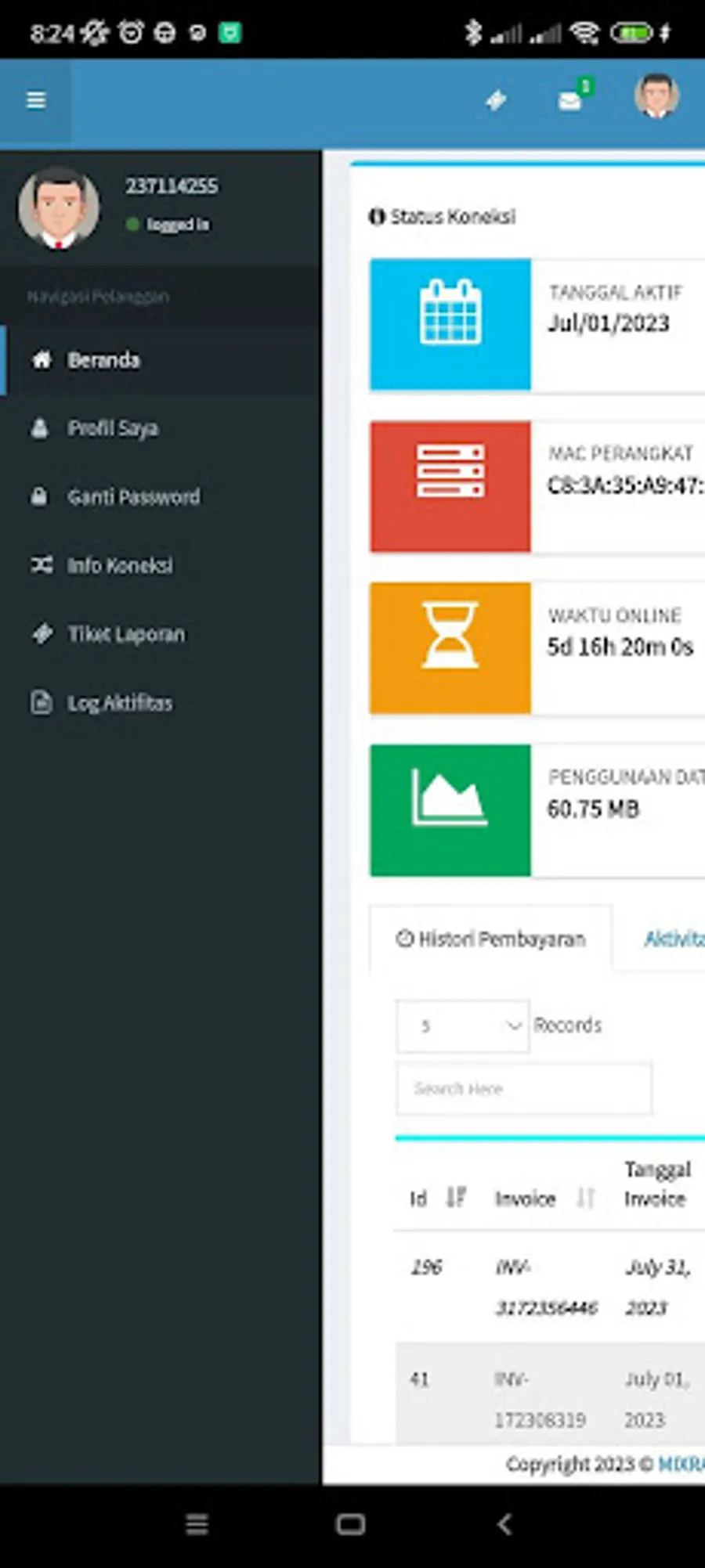 Aplikasi yang berfungsi untuk memonitor pembayaran pelanggan internet WF Resik