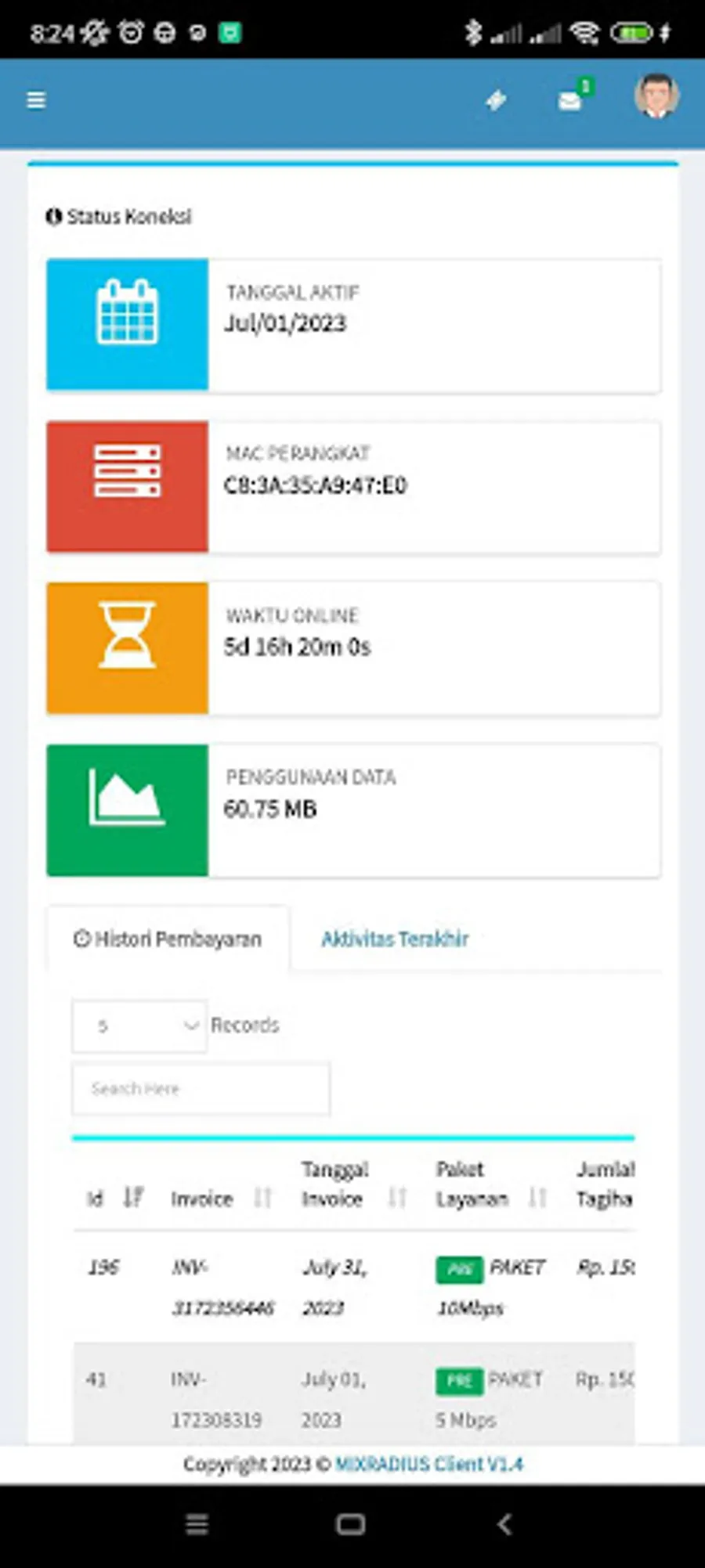 Dengan aplikasi ini, Anda dapat lebih mudah memantau masa aktif, jenis paket dan informasi lainnya terkait dengan masa berlangganan Anda di WF ResiK