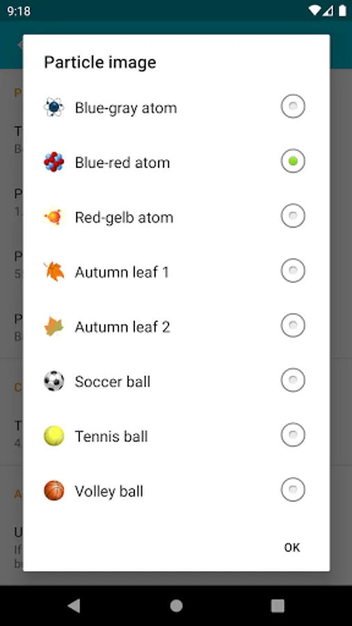 - In the live wallpaper mode, the active “static” wallpaper can be used as a background. You can mix your favorite background picture with particles “flying” in front of it.