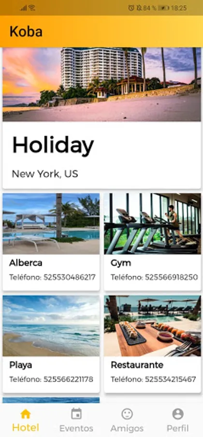 Koba es una aplicación que te conecta con tu hotel, donde podrás encontrar información sobre todos los horarios, actividades y eventos del momento.