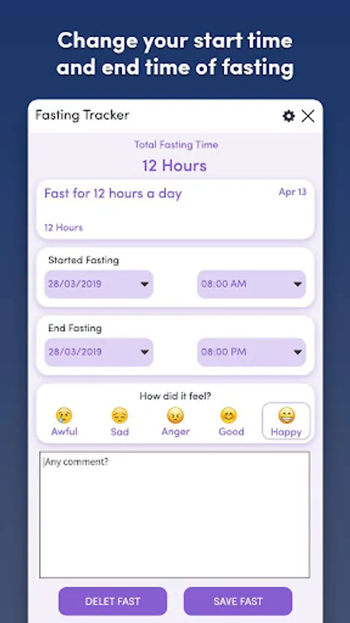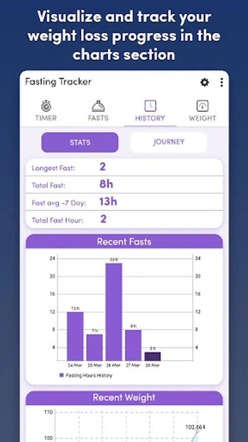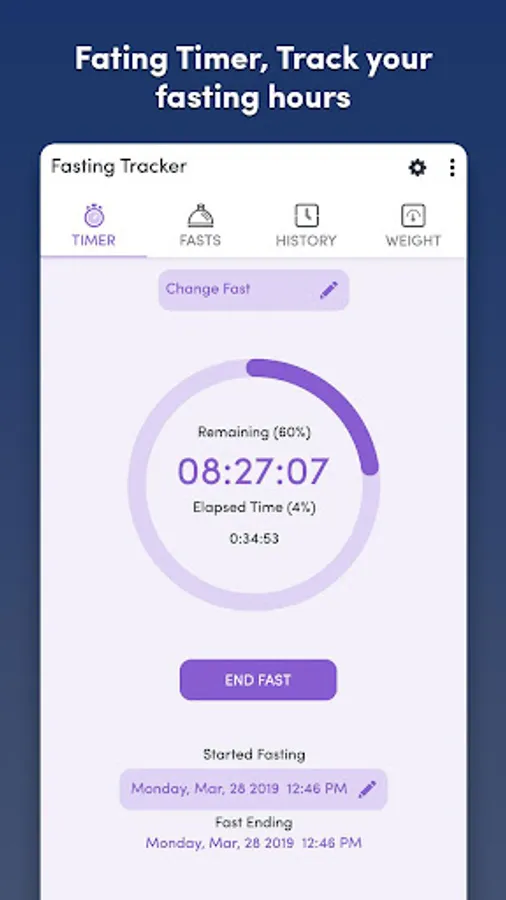 Fasting Tracker: Track Fasting app is a very light and simple fasting tracker. It allows users to modify fasting time and length of the fast and track body weight.