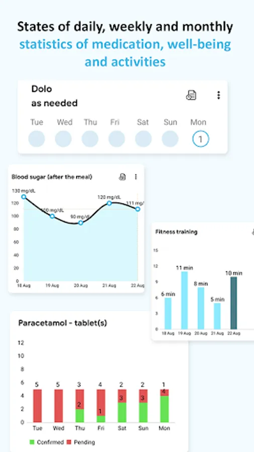 β’ See upcoming, missed and taken medicine, pill, and supplement in a day.