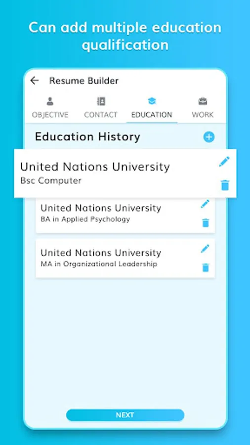 - Create, view, duplicate, manage and delete multiple profiles in this Resume Builder Tool.