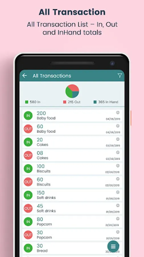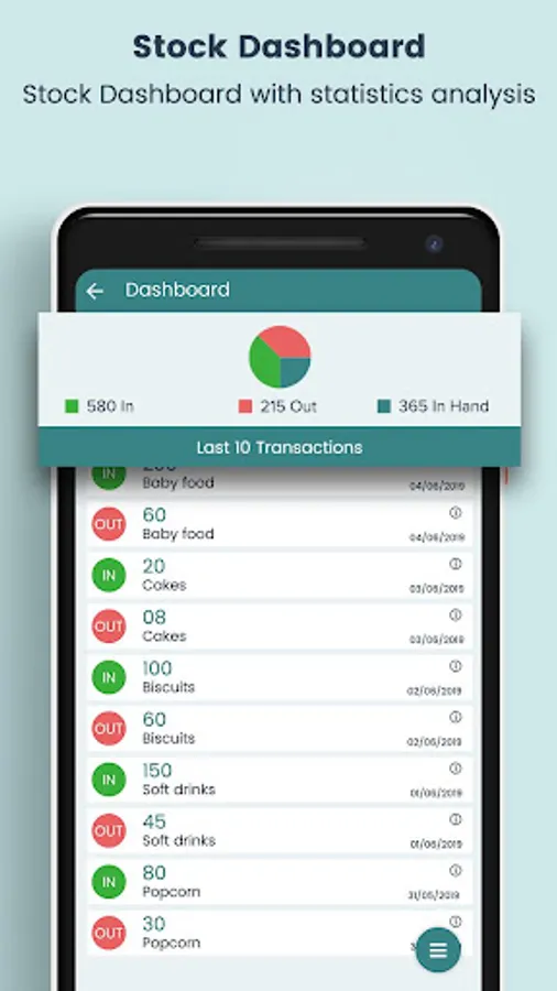 - Shows Pie chart report of product in (import), product out (export), and in hand stock helps you to analyze the stock easily.