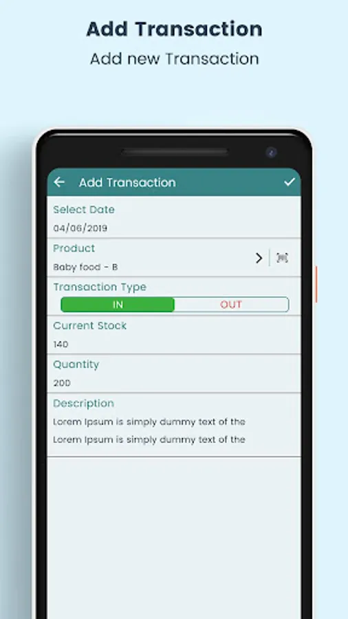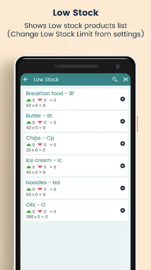 This app manages product by adding product details like name, product id, buy rate, and description about product. It also manages product transactions – in (import) /out (export). It shows low stock products based on low product limit set in settings. Low stock product list helps you to decide what to buy to control inventory.