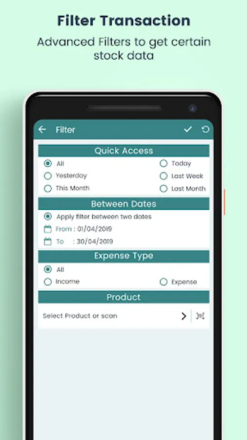 - Search and filter utilities are available for easily search products and filter transactions.