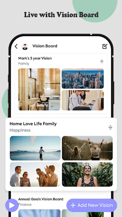 Dashboard goal tracking will help users to quickly identify their progress of Vision strengths and weaknesses with all of their lifetime goals.