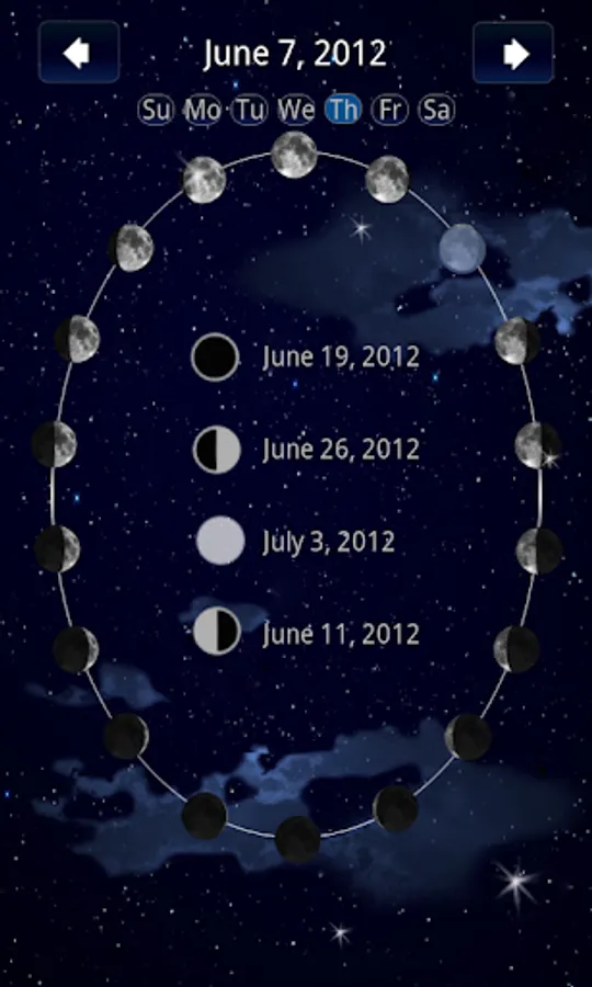 - Touch-n-turn: swipe the moon horizontally to change it by a day.