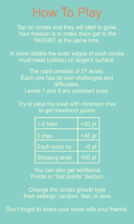 The ‘CIRCLES’ start to grow just after tapping on them, but each has its own growing speed.