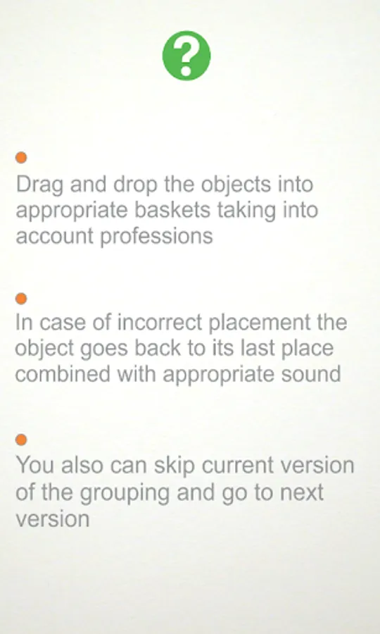 In case of incorrect placement the object goes back to its last place combined with appropriate sound..