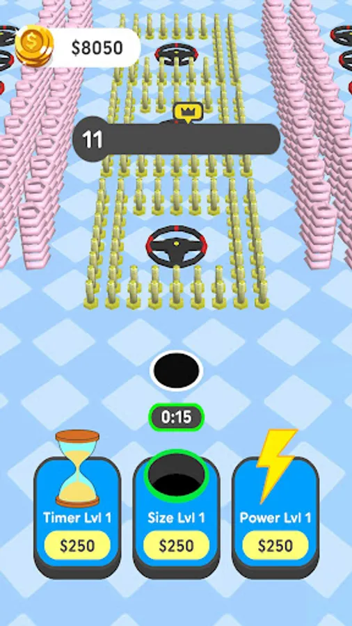 Upgrade Your Car Hole: Improve your black hole by using points to upgrade the timer, make it bigger, and increase its power.