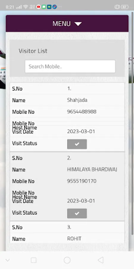 Visitor's verification is done through OTP. Therefore, the details of the visitor are accurate and cannot be tampered with