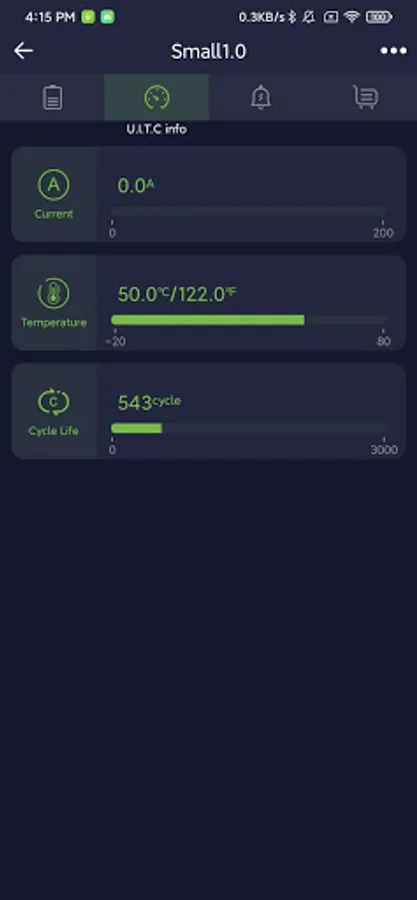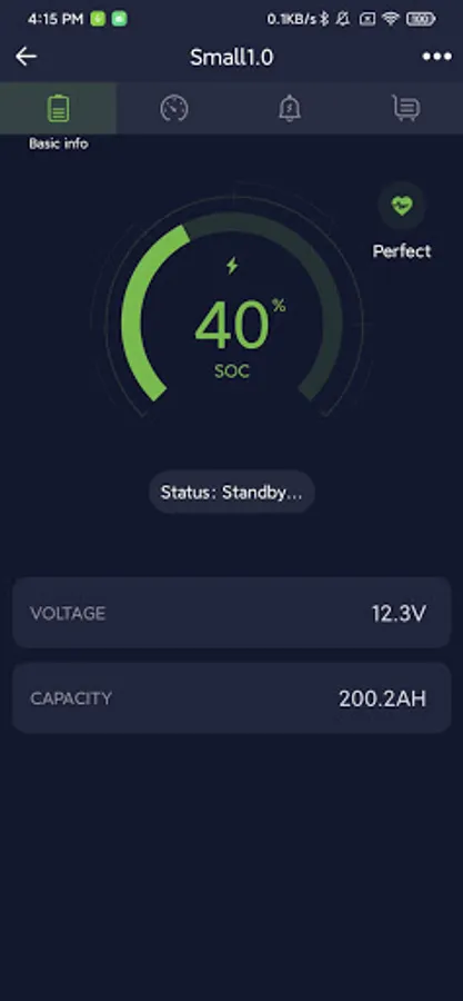 * Displays State Of Charge (SOC) percentage with circle graphic.