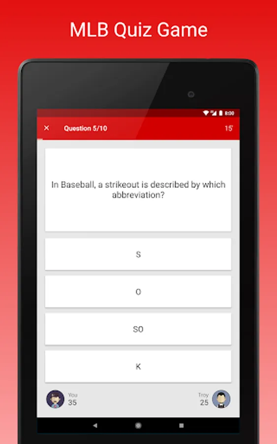 MLB Fan Quiz is a trivia game for real baseball fans! Play a heads up or single player game and test your multiple choice answering skills. There are plenty of questions for you to answer, with more added every day!