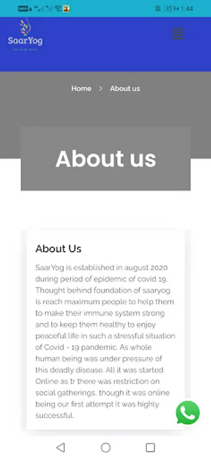 SaarYog is established in august 2020 during period of epidemic of covid 19. Thought behind foundation of saaryog is reach maximum people to help them to make their immune system strong and to keep them healthy to enjoy peaceful life in such a stressful situation of Covid - 19 pandemic.