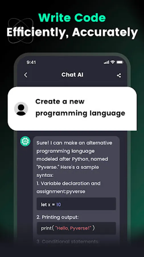 Help you write, check and optimize code. Also it can explain the function of code for you. It can even generate a new programming language!