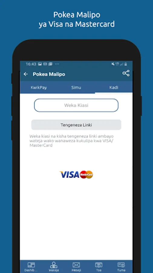 M-Lipa for business is an application which is dedicated to simplifying payments for business across the globe. M-Lipa enables businesses to undertake collections and payments across multiple cashless payment channels from mobile money up to credit card schemes.