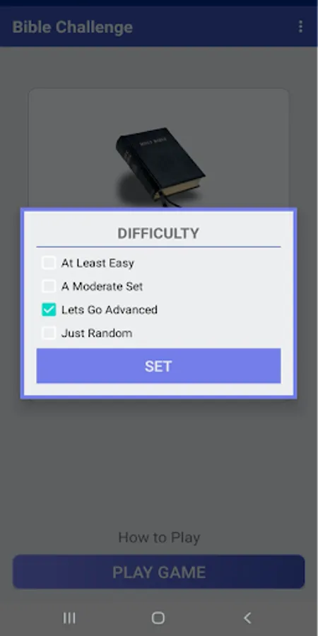 Bible Challenge brings you a new quiz based on the Christian Bible. The game will challenge your knowledge of the bible with three (3) levels of question difficulty. A timed challenge where you are rewarded for correct answers and not penalized for incorrect ones. The real deal is the time to beat the challenge. You also have the opportunity to challenge other players by attempting the same question set as they did.