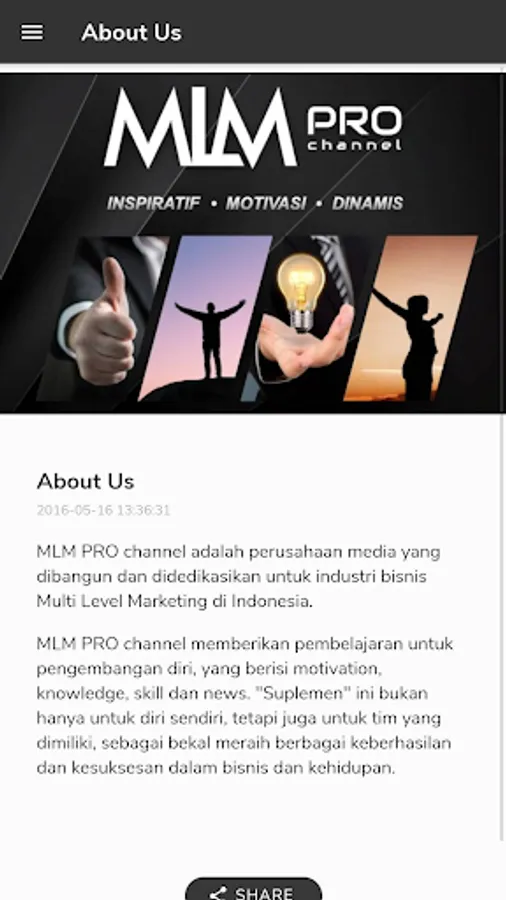 MLM PRO channel adalah media pembelajaran untuk pengembangan diri, yang berisi motivation, knowledge, skill dan news. "Suplemen" ini bukan hanya untuk diri sendiri, tetapi juga untuk tim yang dimilikinya, sebagai bekal meraih berbagai keberhasilan dalam bisnis dan hidupnya.