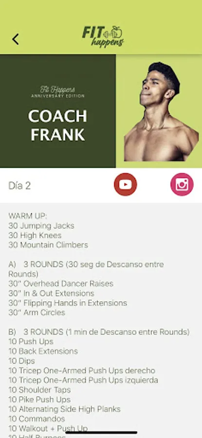 Prerecorded workouts with different coaches so you can watch them at any time (full body, upper body + abs and lower body).