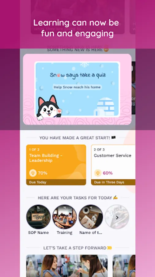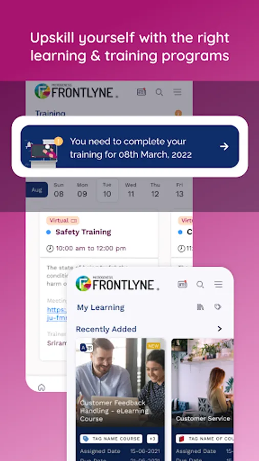 Introducing Frontlyne, your one-stop app to take control of your professional growth. Through this, you will be able to access the trainings assigned to you and complete learning courses. We hope that you will be able to take charge of your professional growth with us and be successful every step of the way!