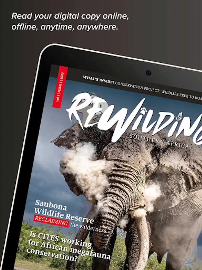 Rewilding may be considered as an expansive approach to conservation, allowing nature to do what she does best to repair and revitalise habitats. Rewilding is the science of conservation which promotes ecosystem health and the protection of all natural resources, rather than focusing on just a few endangered species. REWILDING SOUTHERN AFRICA will provide an integrated communications platform for a greater understanding and appreciation of rewilding, and how it can revitalise entire ecosystems. REWILDING SOUTHERN AFRICA is an upmarket quarterly publication aimed at conservationists, policymakers and concerned readers for whom conservation and the improvement of natural habitats shape how they live, what they consume, and where they choose to take their rest. Conservation is everyone’s legacy and concern.
