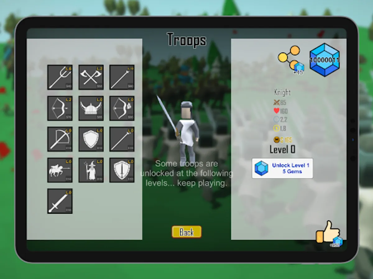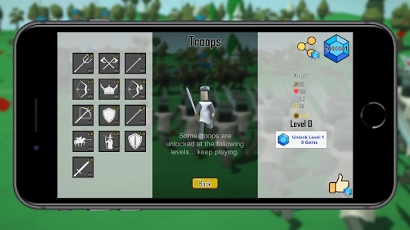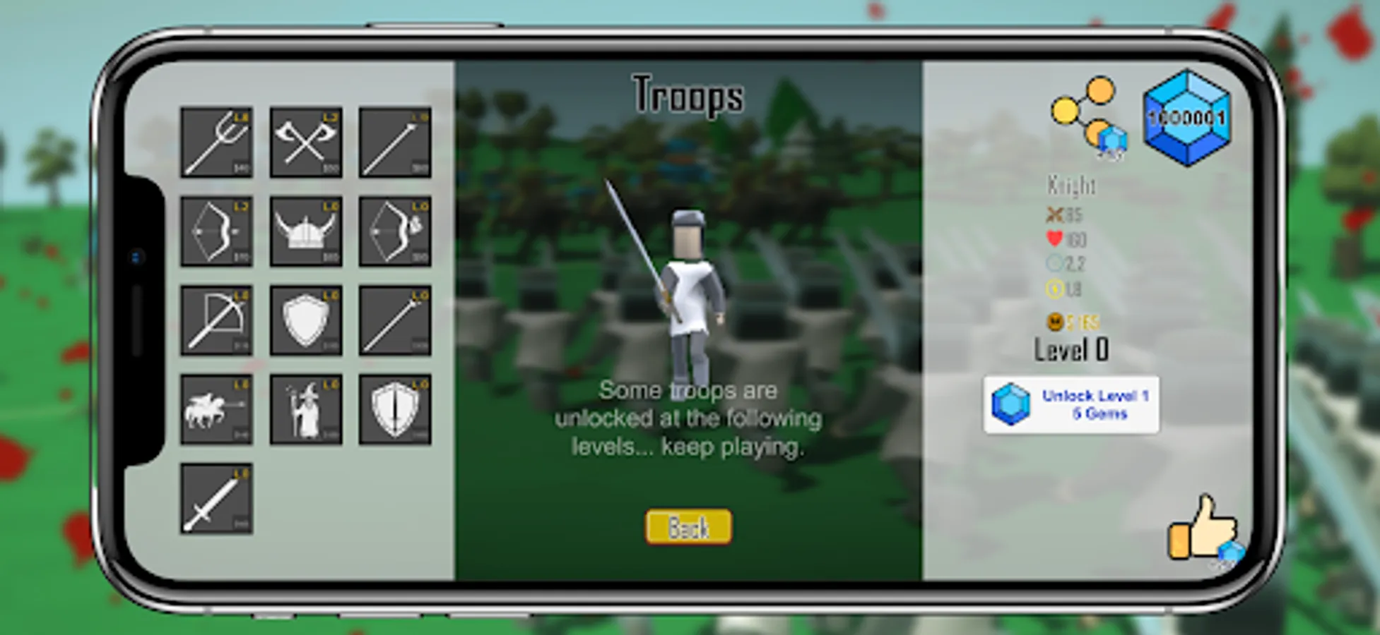 - Animated troops menu, where you can see your soldiers and upgrade them.